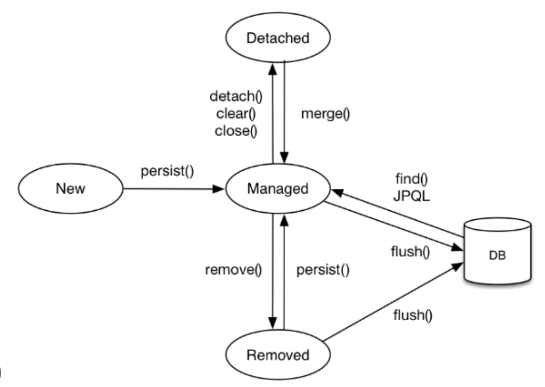 - 영속성 컨텍스트에 저장되었다고 바로 DB에 저장하는 것이 아니라 트랜잭션 커밋 순간 플러쉬(flush)를 통해 반영 함.
