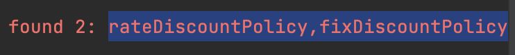 위의 반환 타입은 Rate, Fix이나 DiscountPolicy로 조회시 두 빈(rateDiscountPolicy,fixDiscountPolicy)이 조회된다.