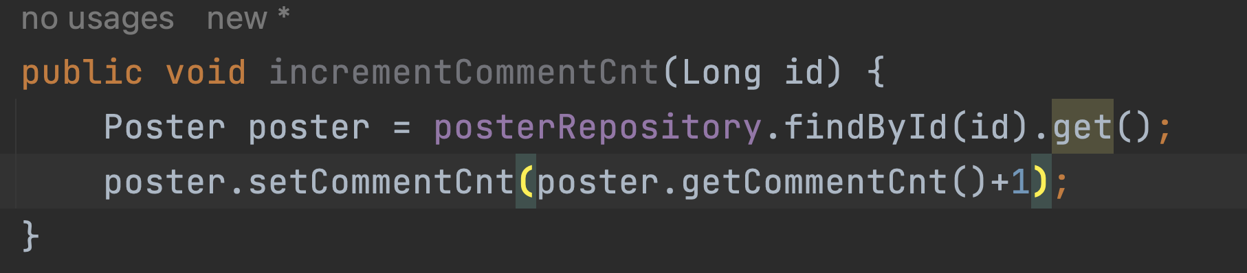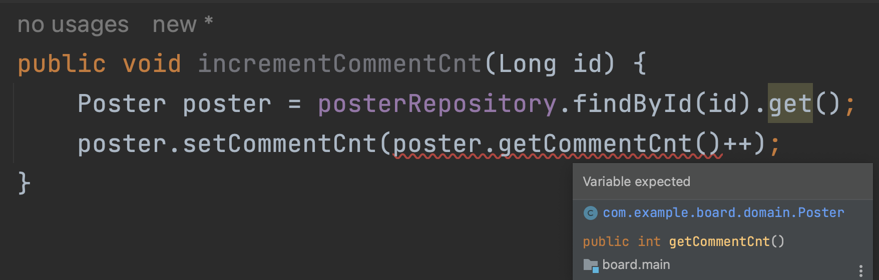 댓글 개수 증가를 위한 메서드를 작성하는데 이게 안되는것이다...