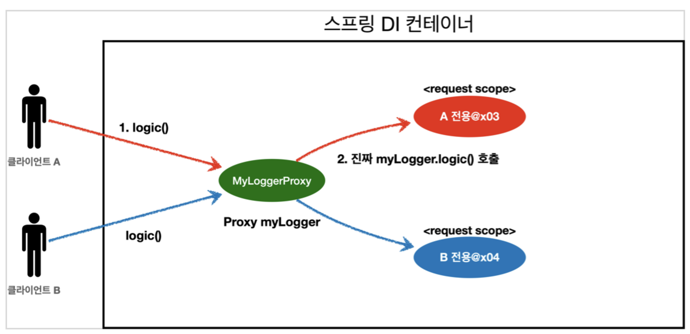 스프링 컨테이너에서 myLogger 빈을 검색해 보면?