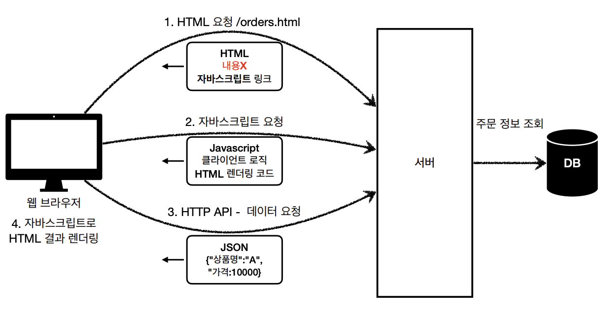- 웹 브라우저가 HTTP API를 요청하여 받은 JSON으로 HTML을 동적으로 만들어 본다.