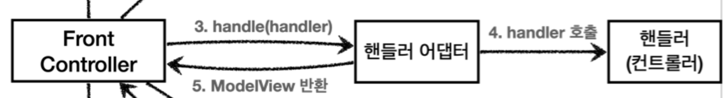 // 3. 핸들러 어댑터 실행 -> 4. 핸들러 어댑터를 통해 핸들러 실행 -> 5. ModelAndView 반환