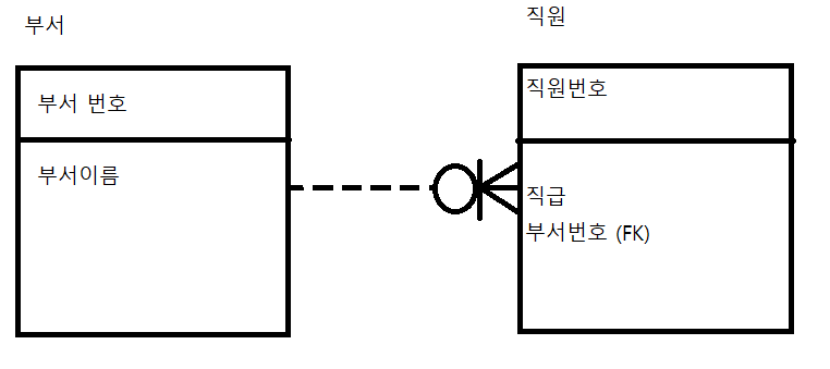 점선 : 부모 테이블의 PK를 PK로 사용하지 않음( 일반 속성으로 포함한다는 것)