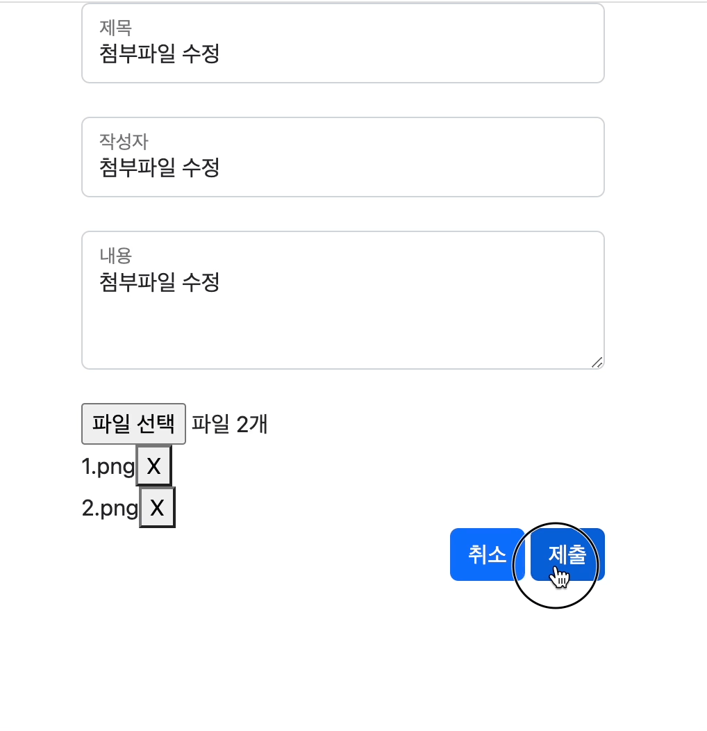 먼저 게시글 수정 클릭시 첨부파일 수정 내용에 관한 처리를 어떻게했는지 이야기를 하자면
