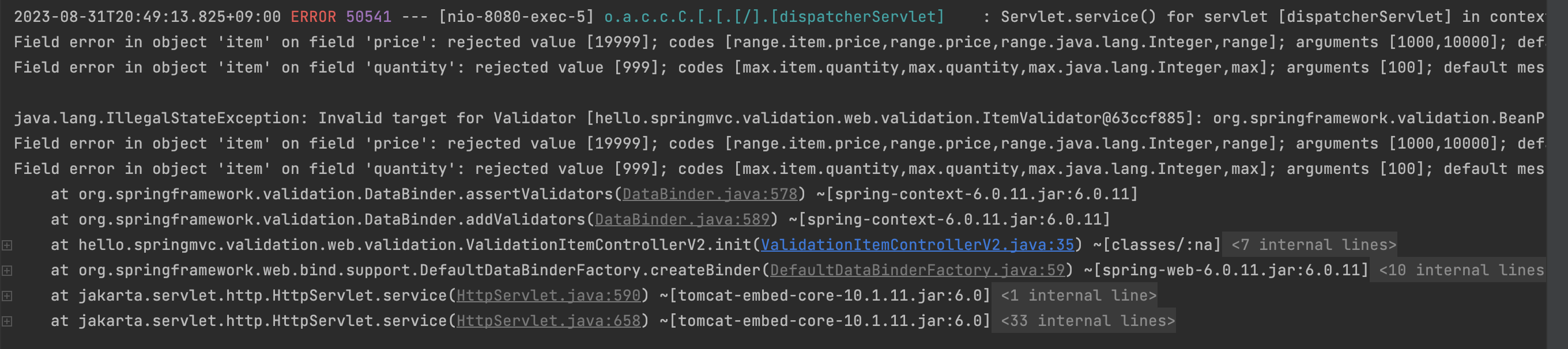 java.lang.IllegalStateException: Invalid target for Validator 에러이며
