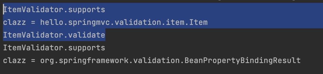 드래그한 영역은 item 객체가 검증기를 거치는 과정이고, 아닌 부분은 BindingResult의 부분이다.