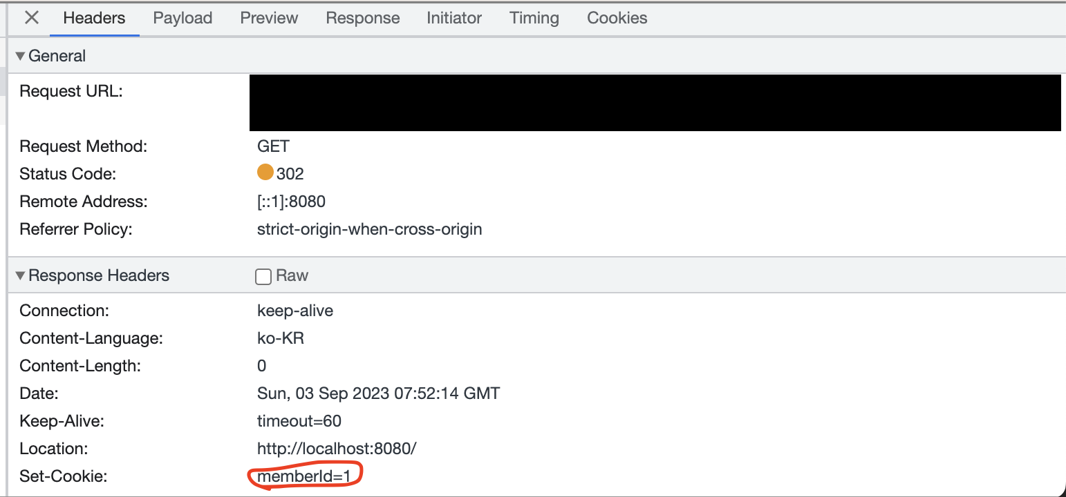 응답으로 쿠키가 잘 설정되었지만...