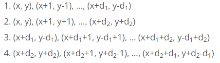1번 방법을 보시면 (x,y) 기준점에서 시작하여 (x+d1,y-d1)까지 경계선을 그립니다