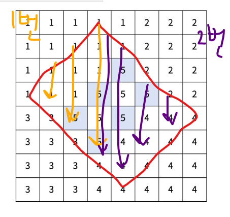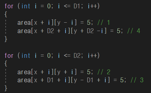 area[x + D1 + i][y - D1 + i] = 5; // 3