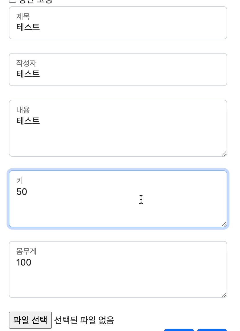 게시글 작성과 달리 키(height)와 몸무게(Weight)는 검증하지 않기에