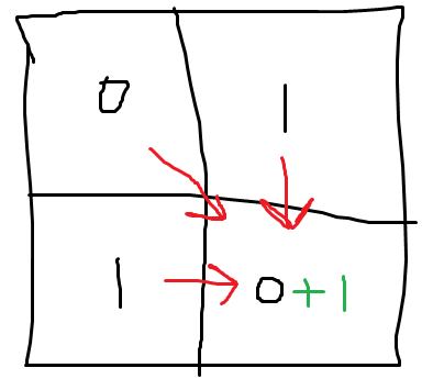 예를 들어 2x2 크기의 board가 있다고 하자.