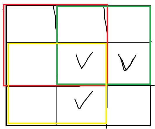 좌, 우 각각 노란색, 초록색 테투리에서 가질 수 있는 정사각형 최대 변의 길이가 담겨져 있다.