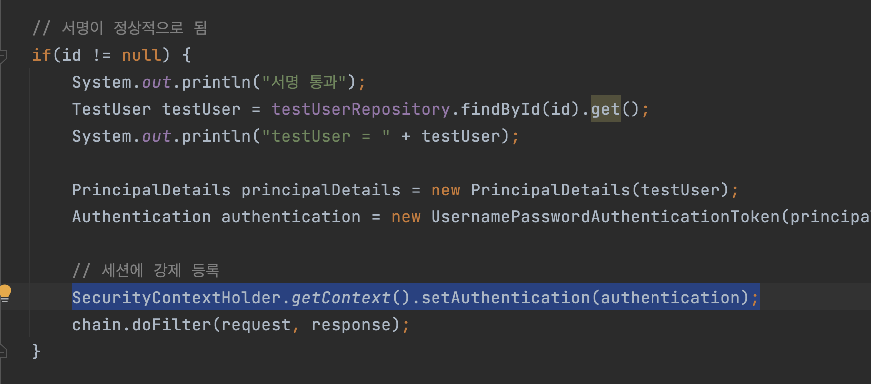 다음은 스프링 시큐리티의 AuthenticationFilter를 거쳐 인증 완료시