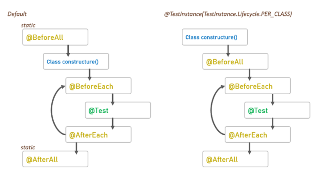 JUnit5에서 테스트 클래스의 Life Cycle은 기본값이 PER_METHOD이다.