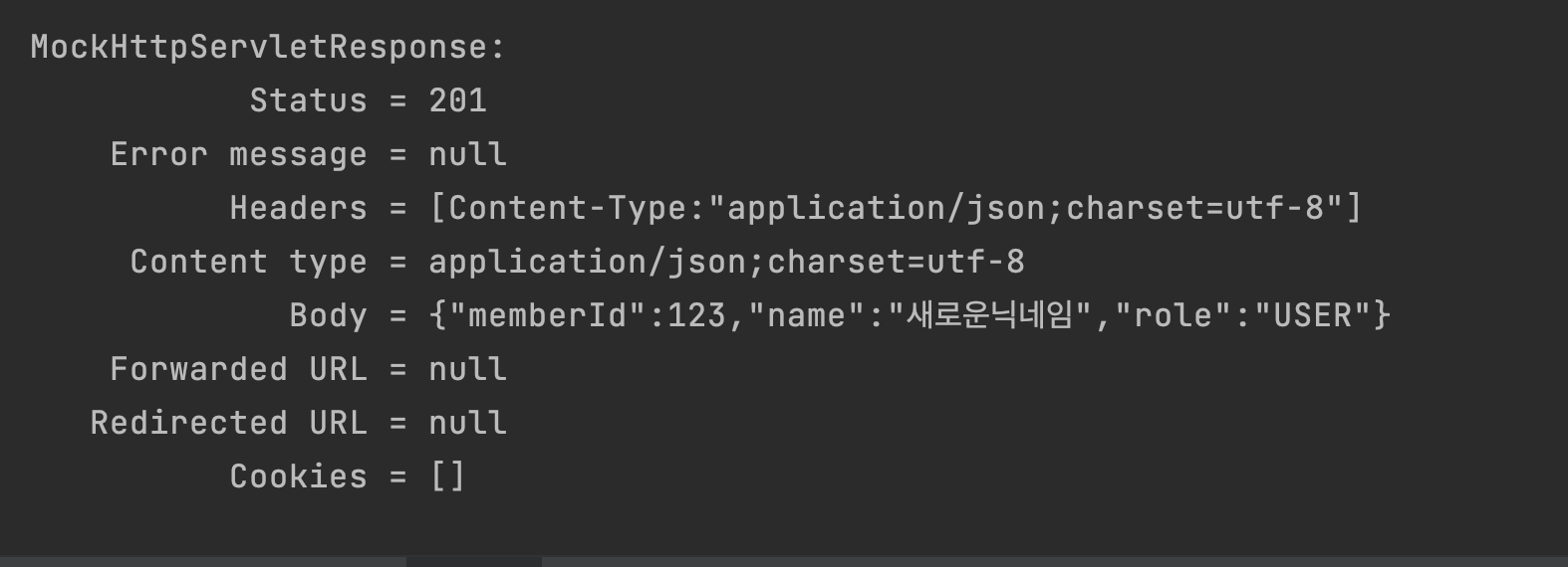 - ObjectMapper로 signUpMember를 JSON으로 변환하여 body에 담았다.