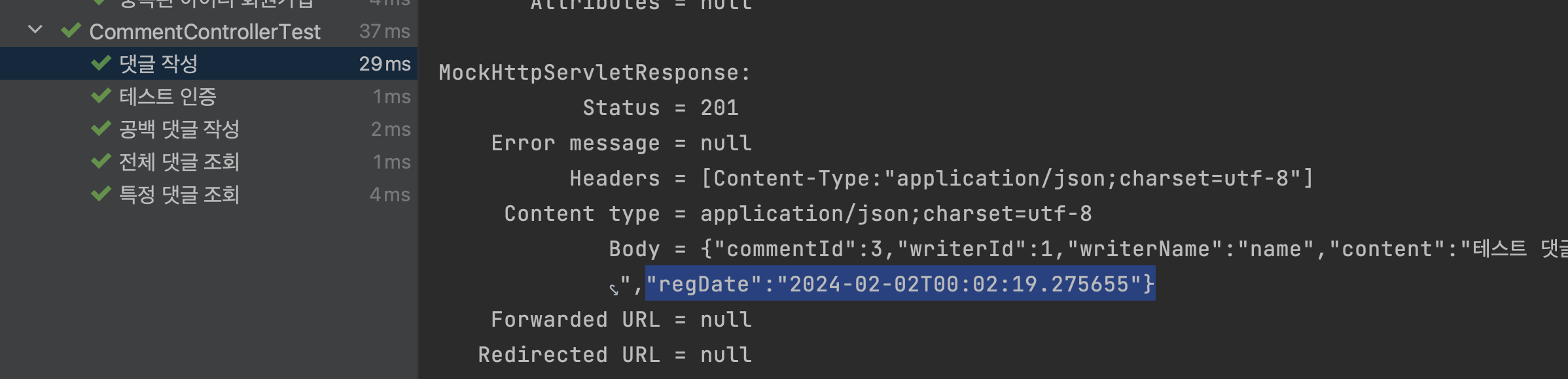 역시나... 검증시 JSON 응답과 일치시키기위해 String으로 변환해주자 ^^