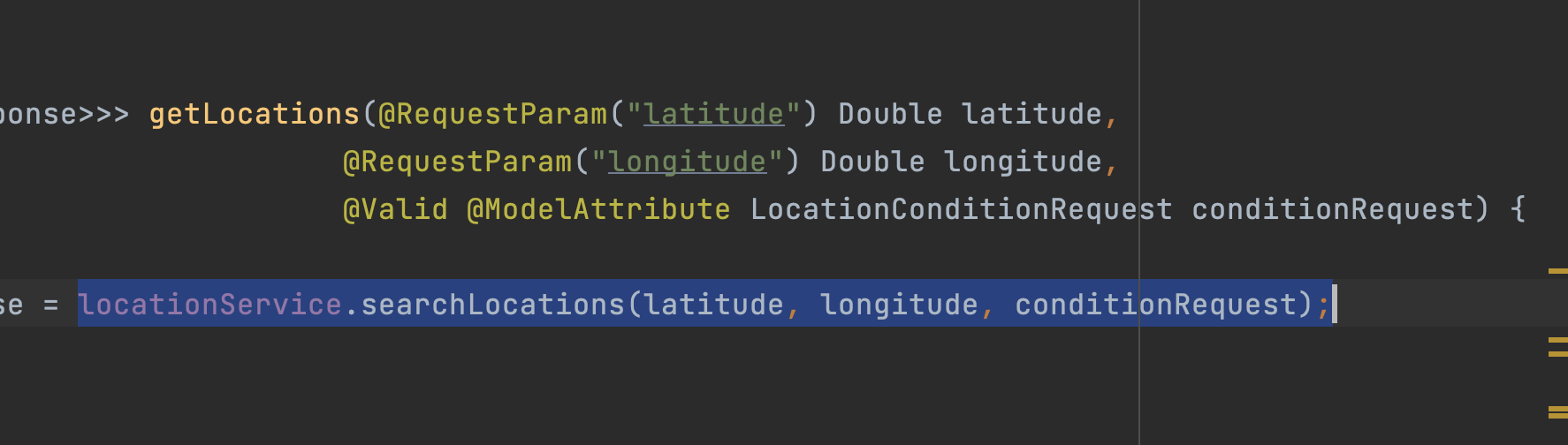 위와 같이 쿼리 파라미터로 들어온 요청을 매핑하기 위한 LocationConditionRequest를 만든다.