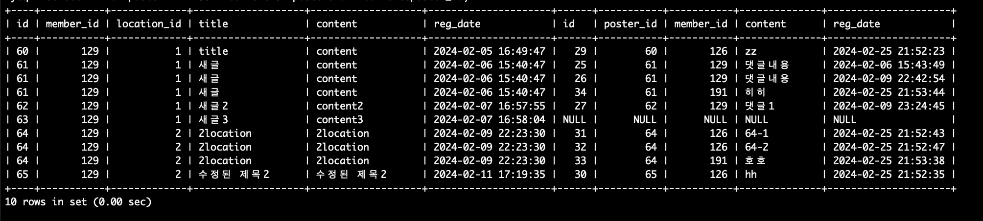 여기서 게시글과 댓글을 LEFT JOIN하여 결과를 보자.