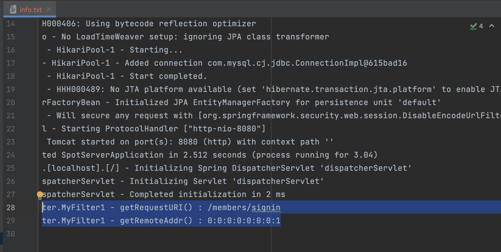 info.txt 로그파일에 info 레벨의 로그가 찍히고