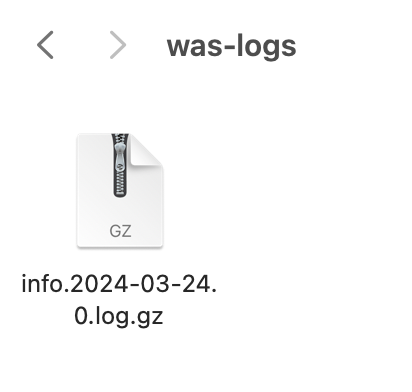 <fileNamePattern>./was-logs/info.%d{yyyy-MM-dd}.%i.log.gz</fileNamePattern> <!-- 해당 패턴 네이밍으로 이전 파일이 기록됨 -->