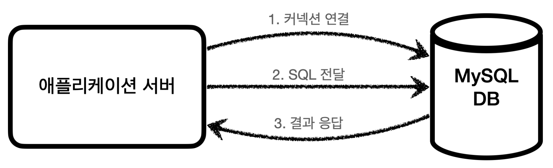 - SQL 전달 : 커넥션을 통해 서버는 MySQL에 맞는 SQL을 전달한다.