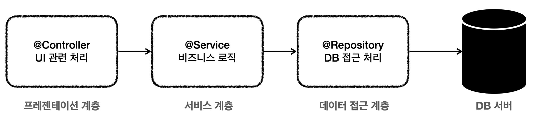 보통 애플리케이션 구조는 다음과 같이 3가지 계층으로 나눈다.