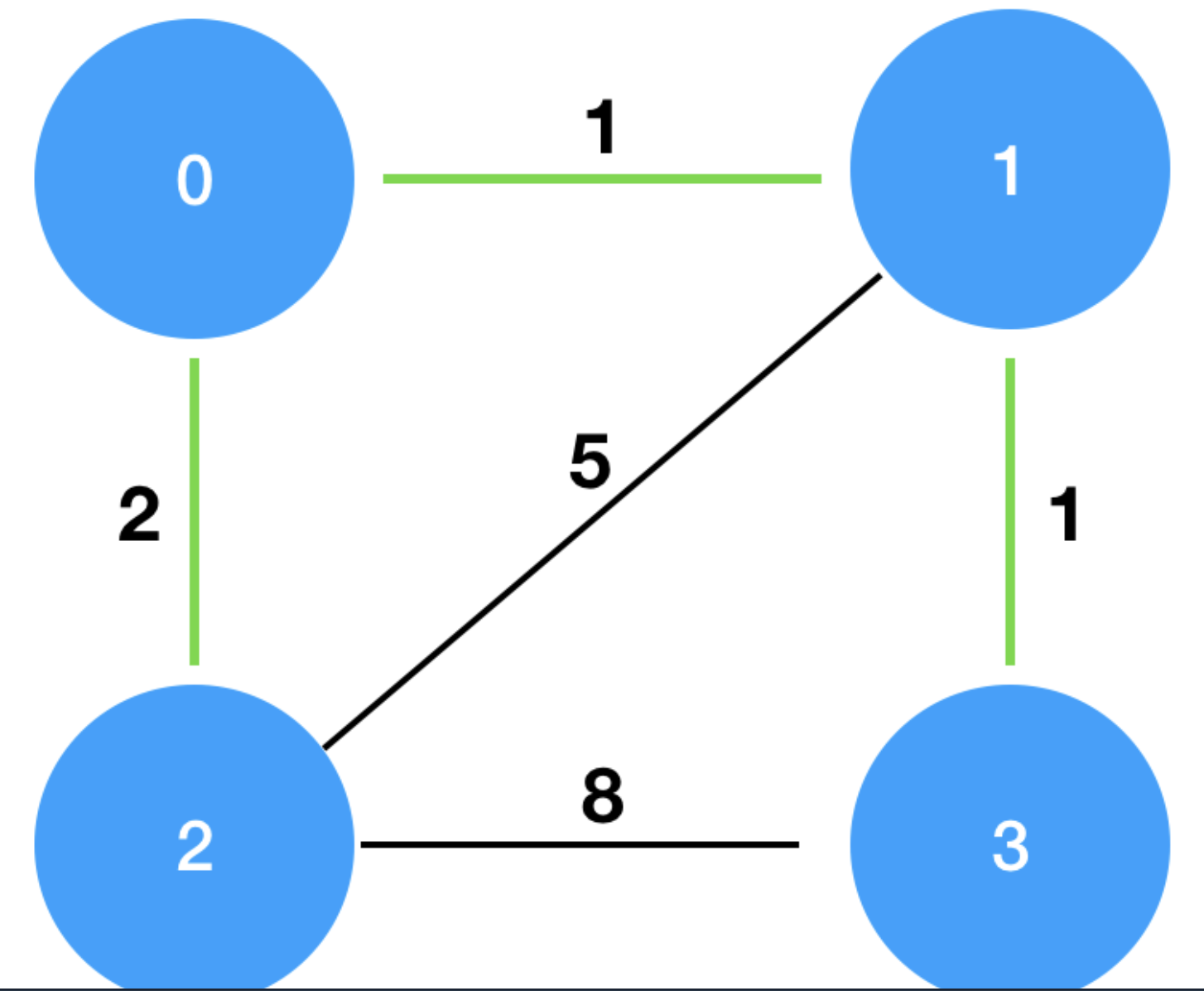 최소 비용 신장 트리를 구하기 위한 알고리즘으로 크루스칼을 사용하였다.