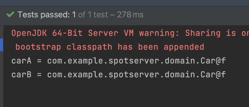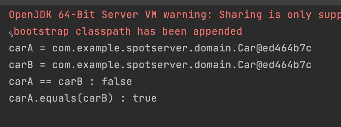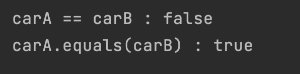 System.out.println("carA.equals(carB) : " + (carA.equals(carB)));