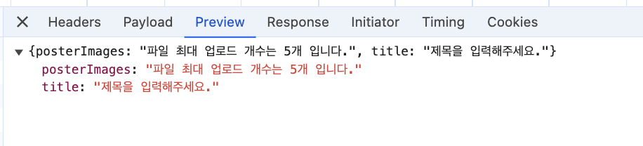 { title: "제목을 입력해주세요", posterImages: "파일 최대 개수 초과" } 라는 응답이 오면