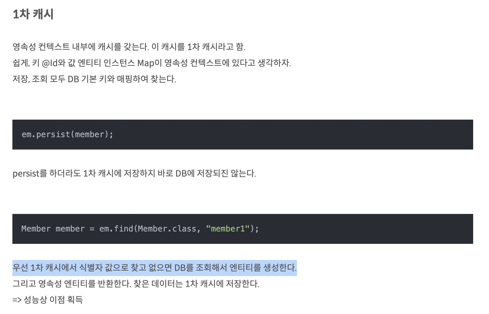영속성 컨텍스트에 저장되어 있는 member를 그대로 반환 시켜준것이다.
