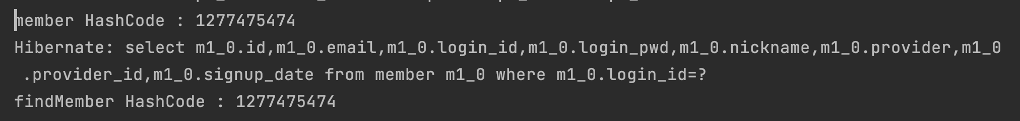 System.out.println("findMember HashCode : " + findMember.hashCode());