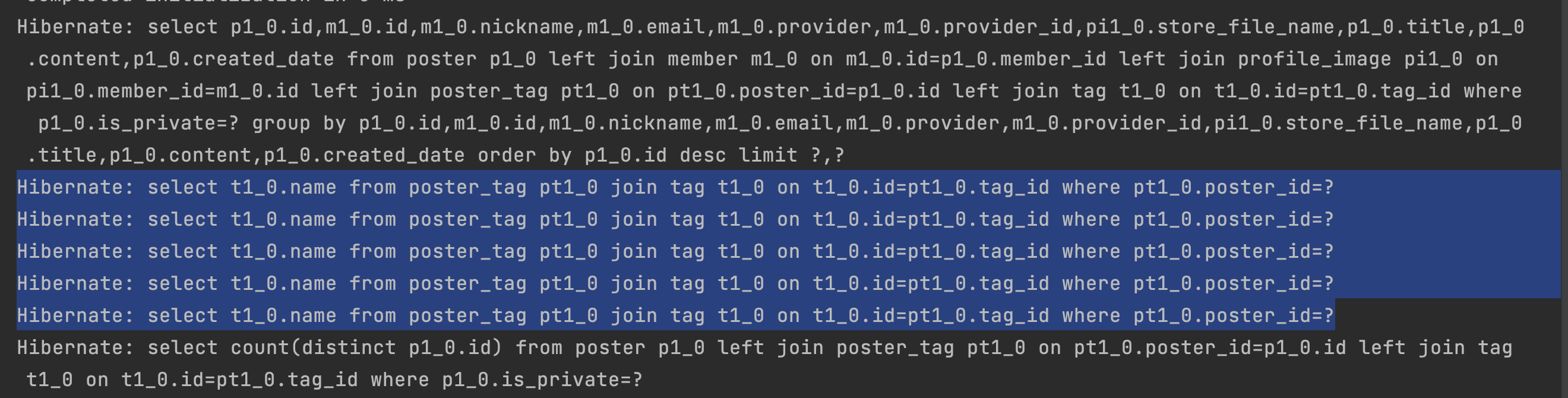 그래서 먼저 게시글 정보를 조회하는 쿼리를 날리고 해당 게시글 각각의 PK를 가지고 태그들을 추가적으로 조회하는 쿼리를 날리는 방식으로 구현한것이다.