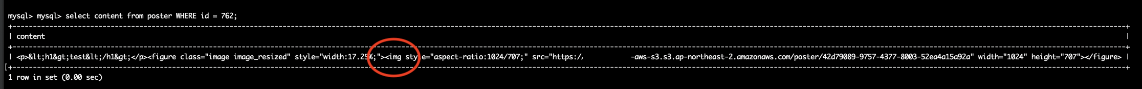 문제 원인은 웹 에디터의 게시글의 내용을 태그와 함께 모든 정보를 DB에 저장하는데