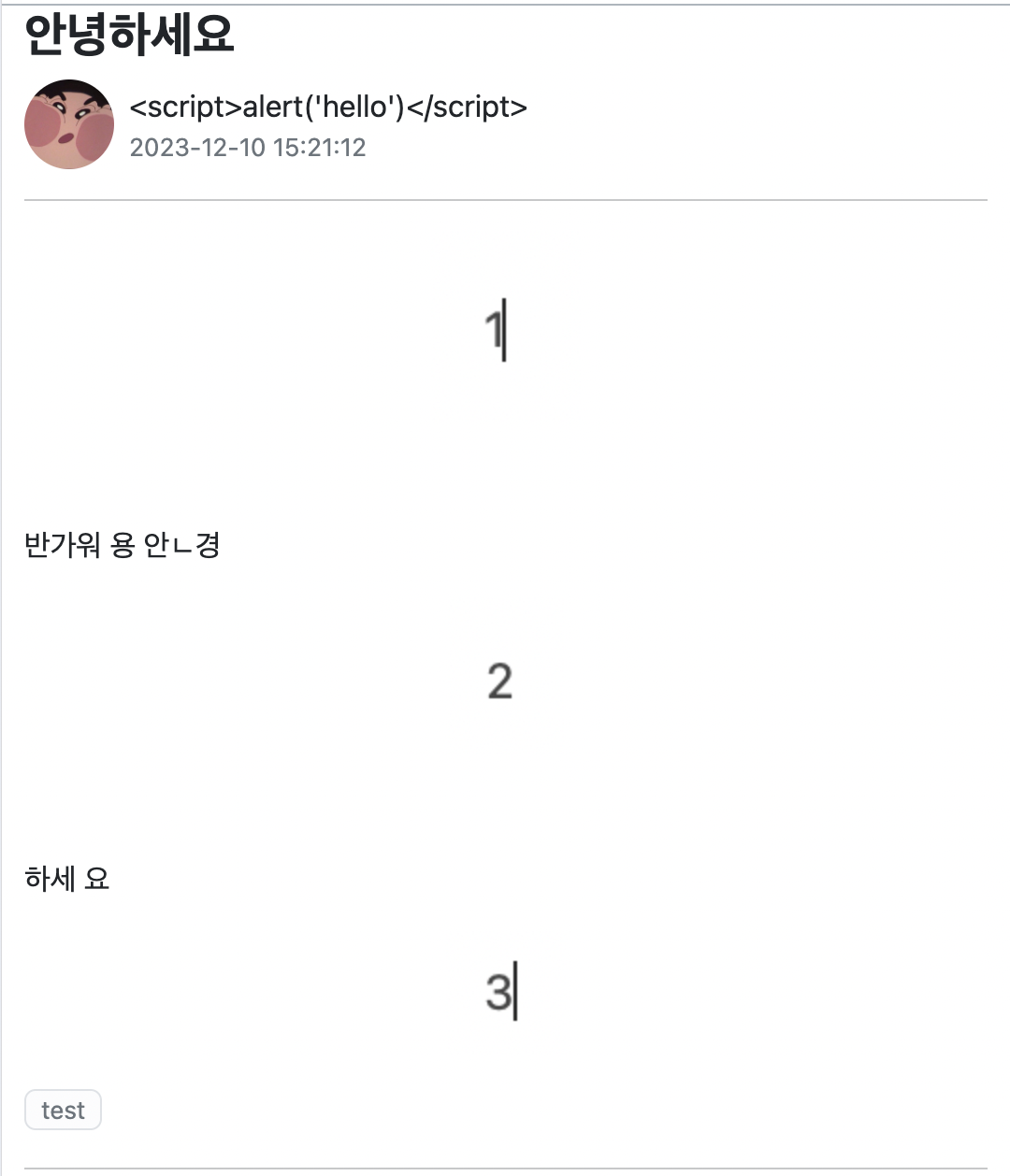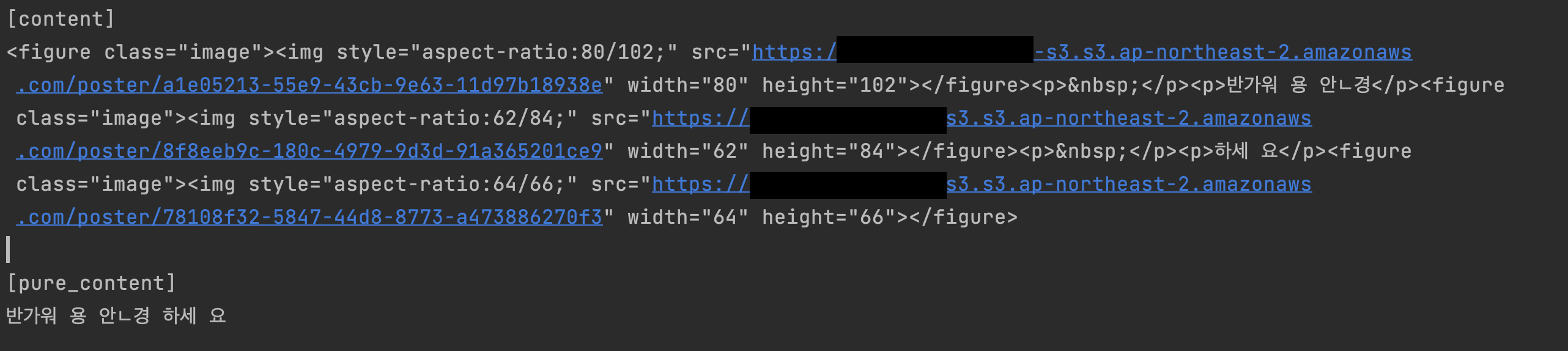 다음과 같은 다양한 태그가 섞인 게시글의 내용이 있지만