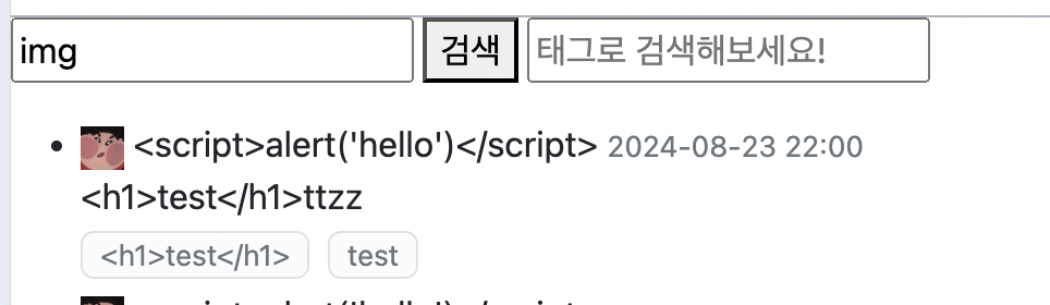 DB에 저장된 해당 게시글의 내용에는 <img> 태그를 포함하고 있기 때문에 검색이 된것이다.