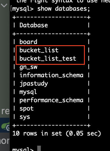 이제 테스트 코드 실행시 환경은 테스트 데이터베이스를 사용한다.