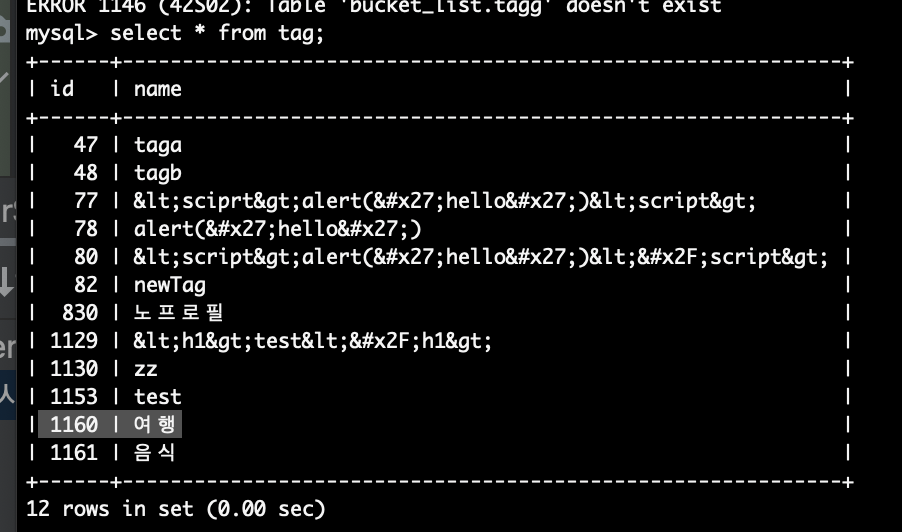 그런데 이미 로컬 환경에서 태그의 name이 "여행"이 이미 존재하는 상황이다.