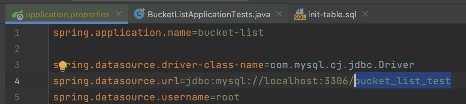 테스트 데이터베이스를 생성하고, 이 데이터베이스를 datasource로 지정해주면 된다.