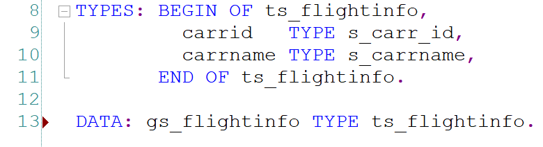 TYPES로 선언하고 DATA 키워드로 Local Structure를 정의한다.
