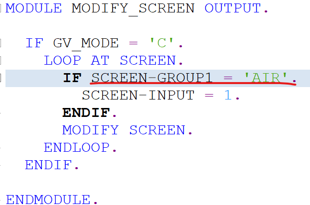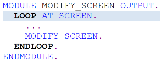 그리고 LOOP AT SCREEN 반복문 안에 MODIFY SCREEN.을 꼭 넣어서