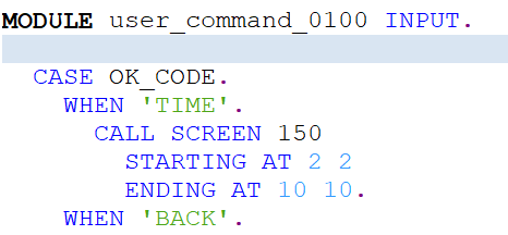 150번 스크린 PAI의 USER_COMMAND에 OK_CODE에