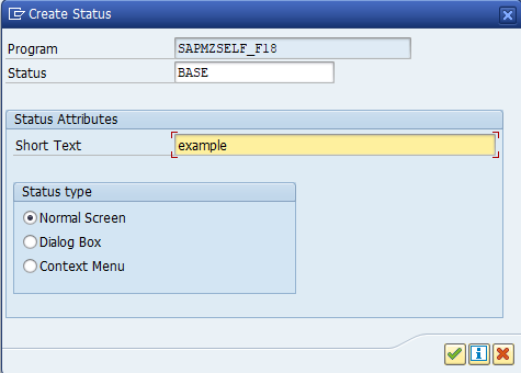 Status Type에 Dialog Box인지 Normal Screen인지에 따라 클릭.