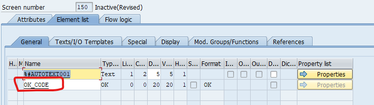 이때 꼭 150번 스크린의 Element List에서 OK_CODE를 추가해주도록하자.