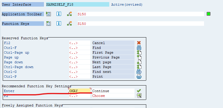 Enter키에 대한 Function Code를 OKAY를 등록하고