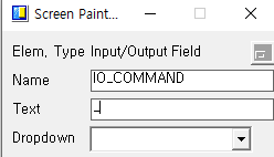 Screen Element인 Input/Output Field를 IO_COMMAND 이름으로 생성