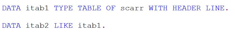 itab1과 itab2 모두 WITH HEADER LINE으로 선언되었다.