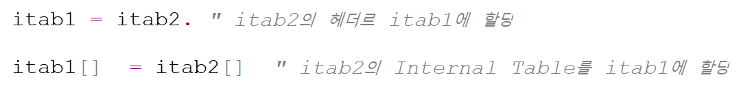 헤더는 변수명 그대로, Internal table은 변수명[]로 구분해서 사용할 수 있다.