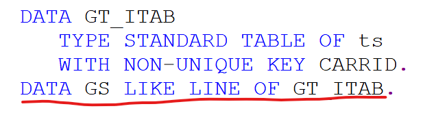 Work Area인 GS와 Internal Table인 GT_ITAB를 따로 선언하여