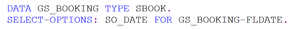 SBOOK의 Structure 타입을 가지고 GS_BOOKING이라는 Object를 생성한다.