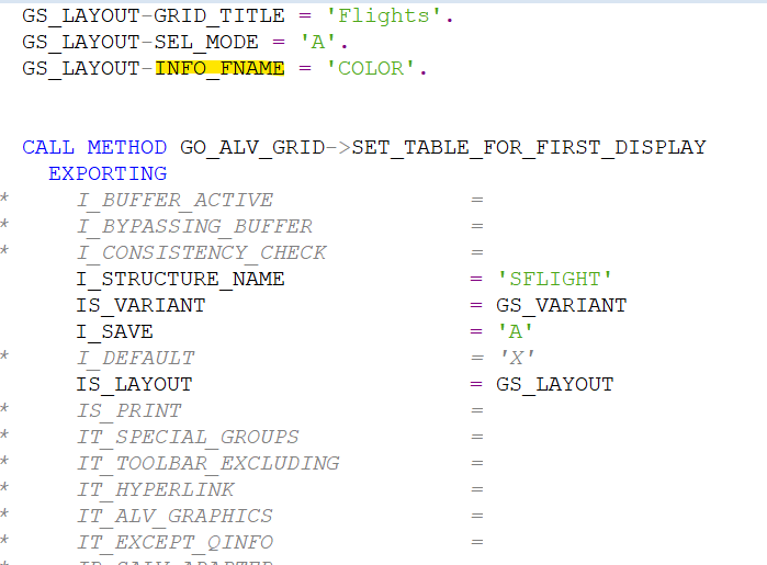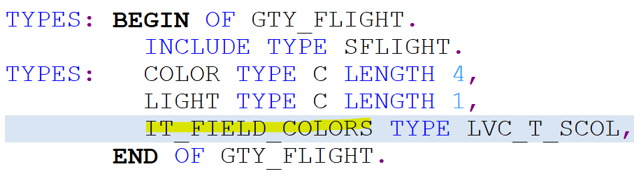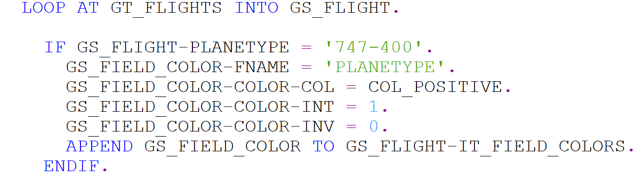 현재 ROW 데이터의 Internal Table은 GS_FLIGHT-IT_FIELD_COLORS이다.